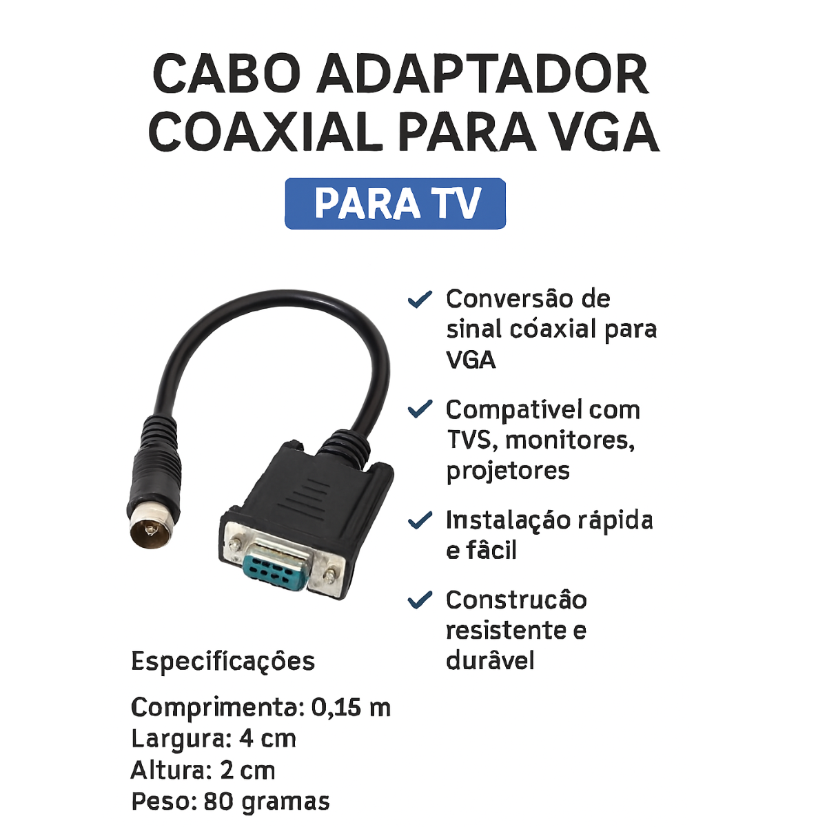 InícioELETRÔNICOSCABOSCABO COAXIAL CABO ADAPTADOR COAXIAL PARA VGA P/TV TRONOS OEM