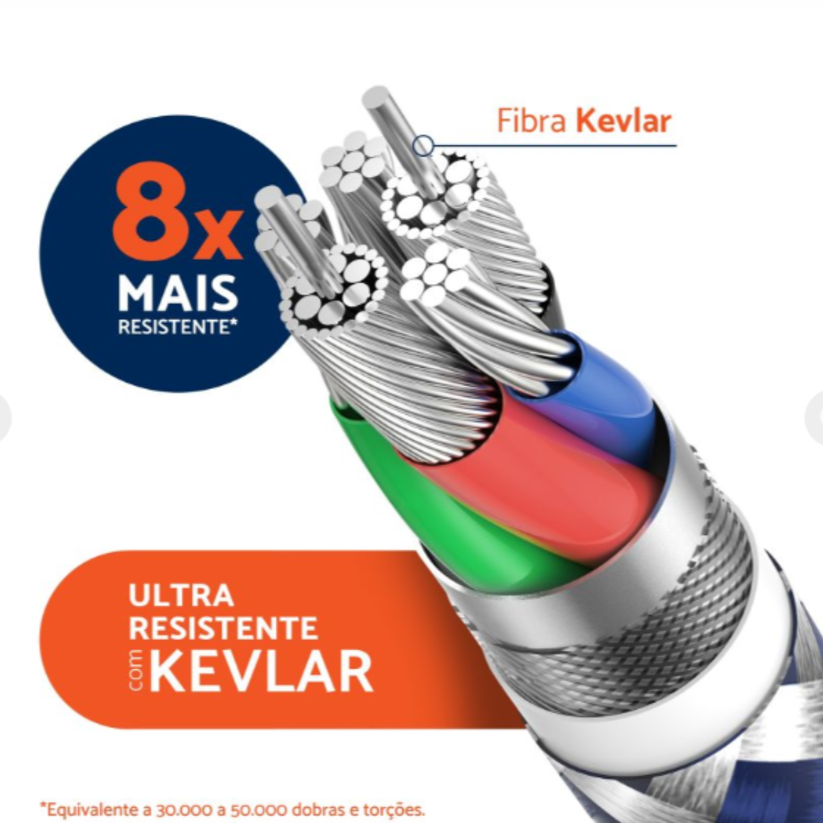 Revestimento interno em Kevlar: até 8x mais resistente que cabos comuns