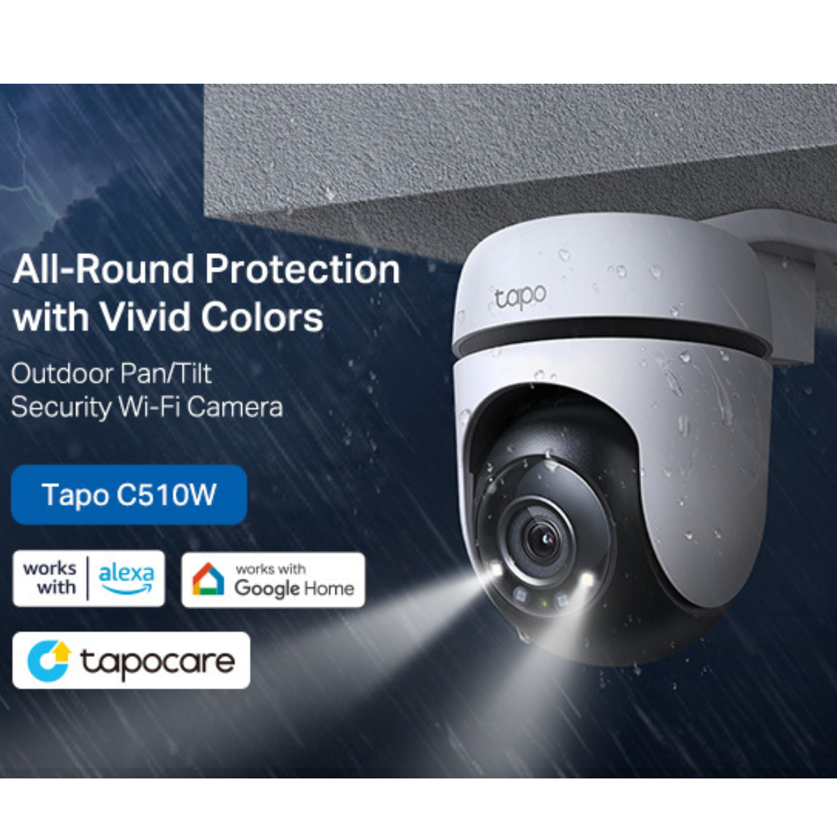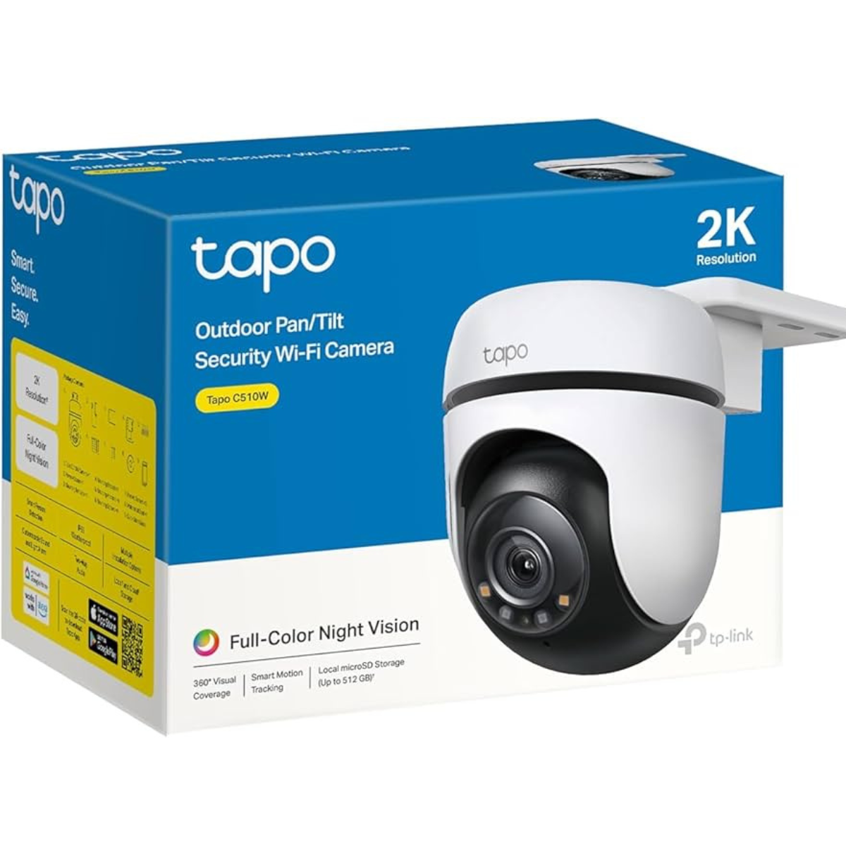 A TP-Link Tapo C510W é uma câmera de segurança externa com resolução 2K (2304 × 1296 px), ideal para monitoramento residencial ou comercial. Com rotação Pan/Tilt de 360° horizontal e 130° vertical, ela cobre todos os ângulos com precisão. A integração com Alexa permite controle por voz e automações inteligentes. Além disso, possui visão noturna colorida, áudio bidirecional e detecção inteligente de movimento com IA.