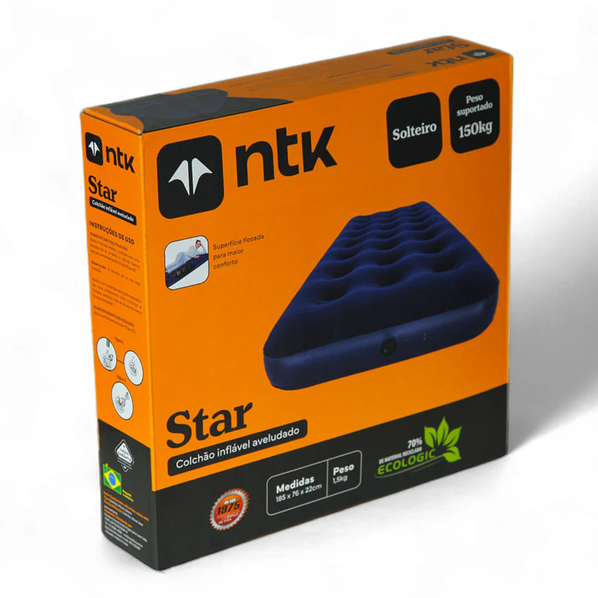 O Colchão Star Solteiro da Nautika é ideal para camping, viagens e uso doméstico. Inflável, compacto e fácil de transportar, oferece praticidade e conforto em qualquer ocasião.