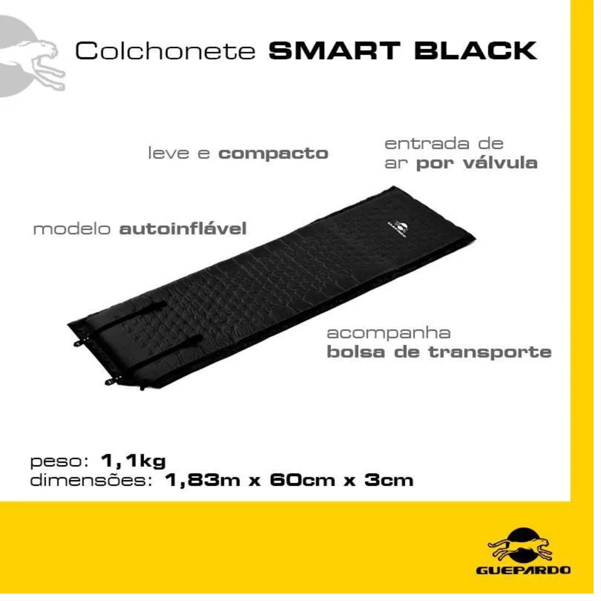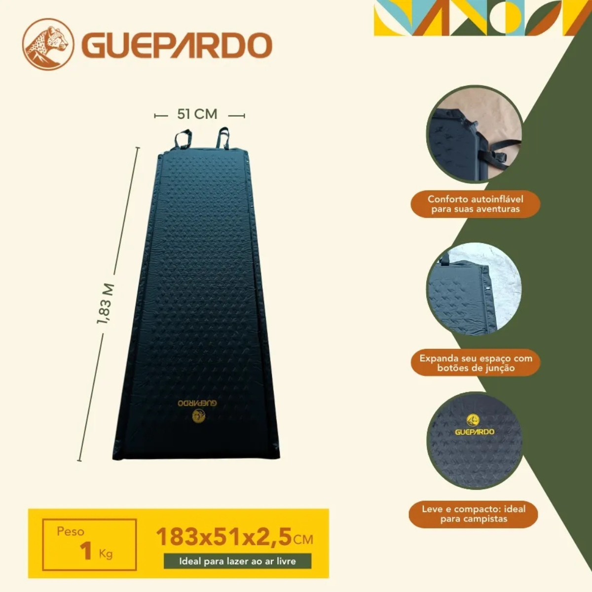 O Colchonete Smart da Guepardo é perfeito para quem busca conforto e isolamento térmico em acampamentos, trilhas ou trekking. Com sistema autoinflável, basta abrir a válvula para que ele comece a inflar sozinho, sem necessidade de bomba.