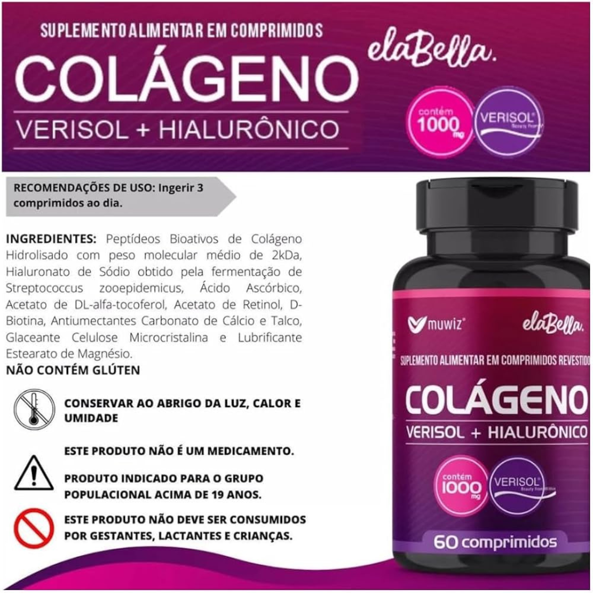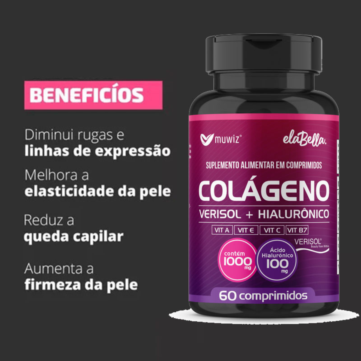 Colágeno Verisol + Ácido Hialurônico 1000mg ? 60 Comprimidos | Muwiz