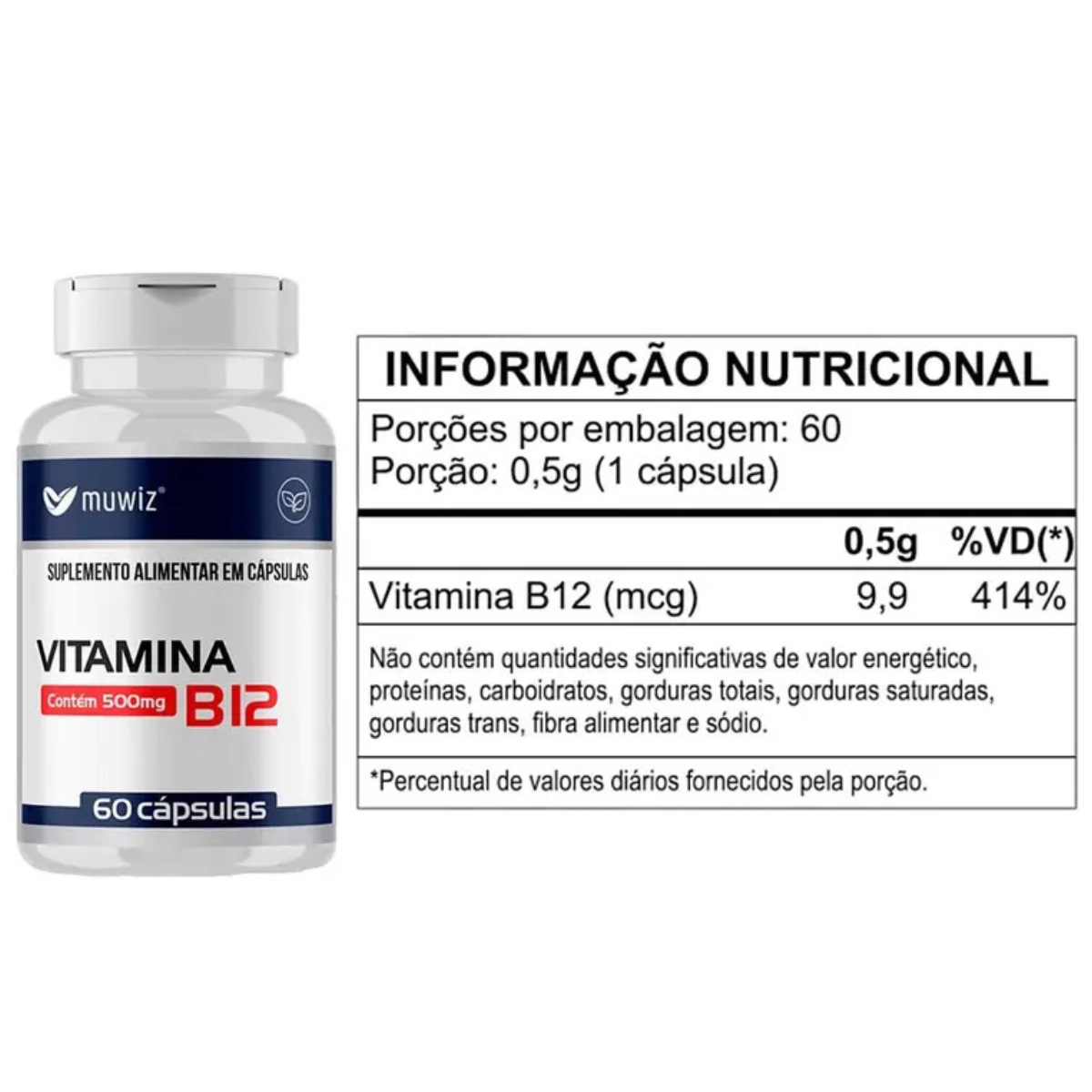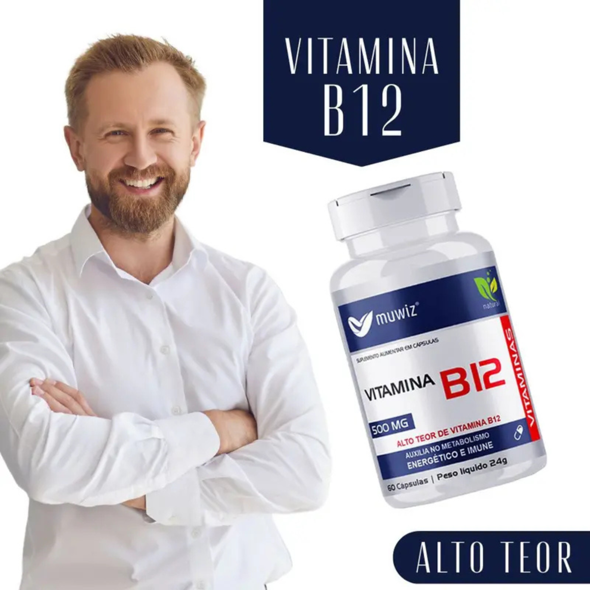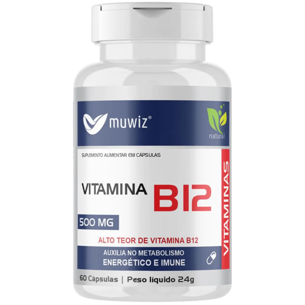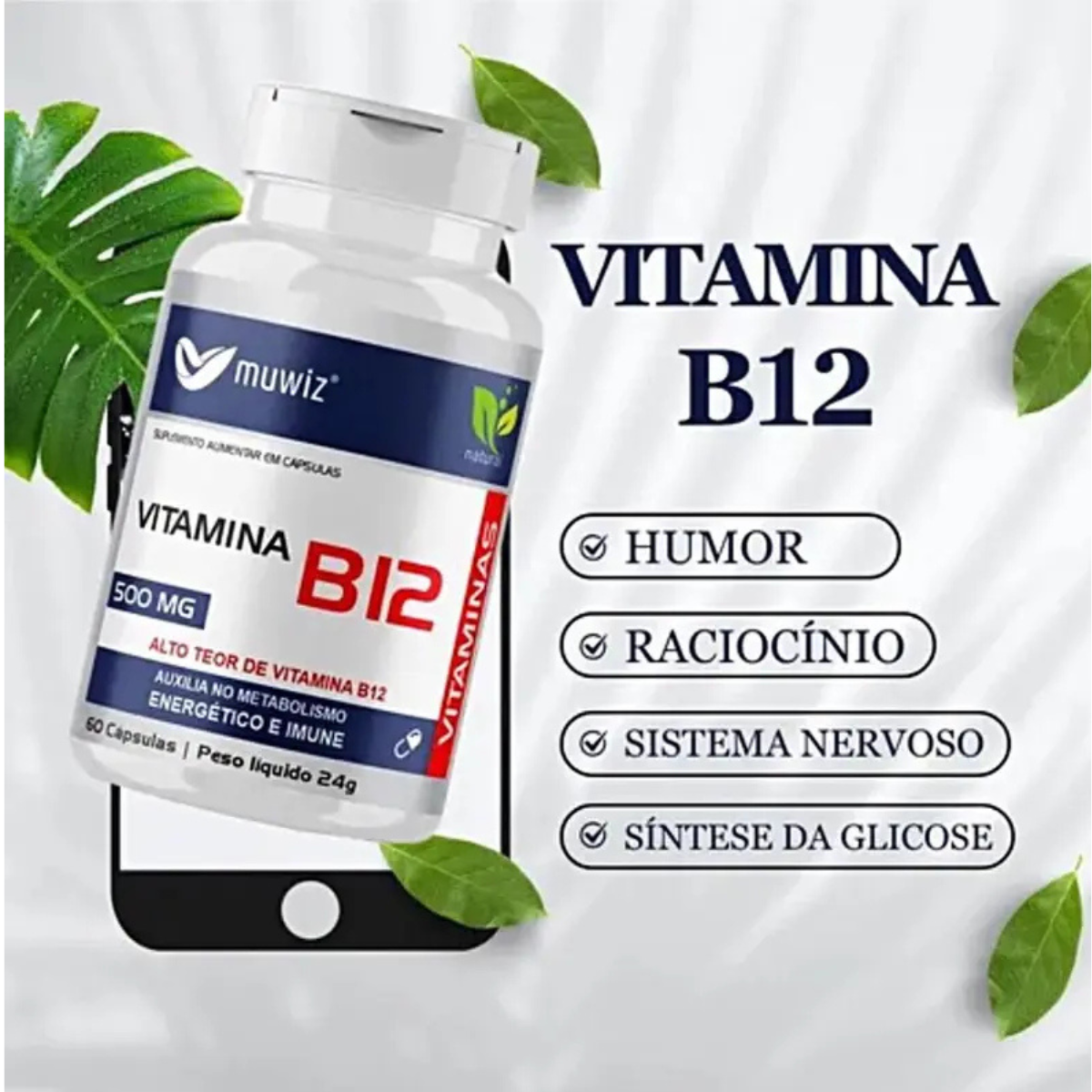 A Vitamina B12 Metilcobalamina Muwiz 500mg com 60 cápsulas (código 1963) é um suplemento essencial para energia, foco, saúde neurológica e formação de glóbulos vermelhos. Ideal para veganos, atletas e pessoas com deficiência de B12.