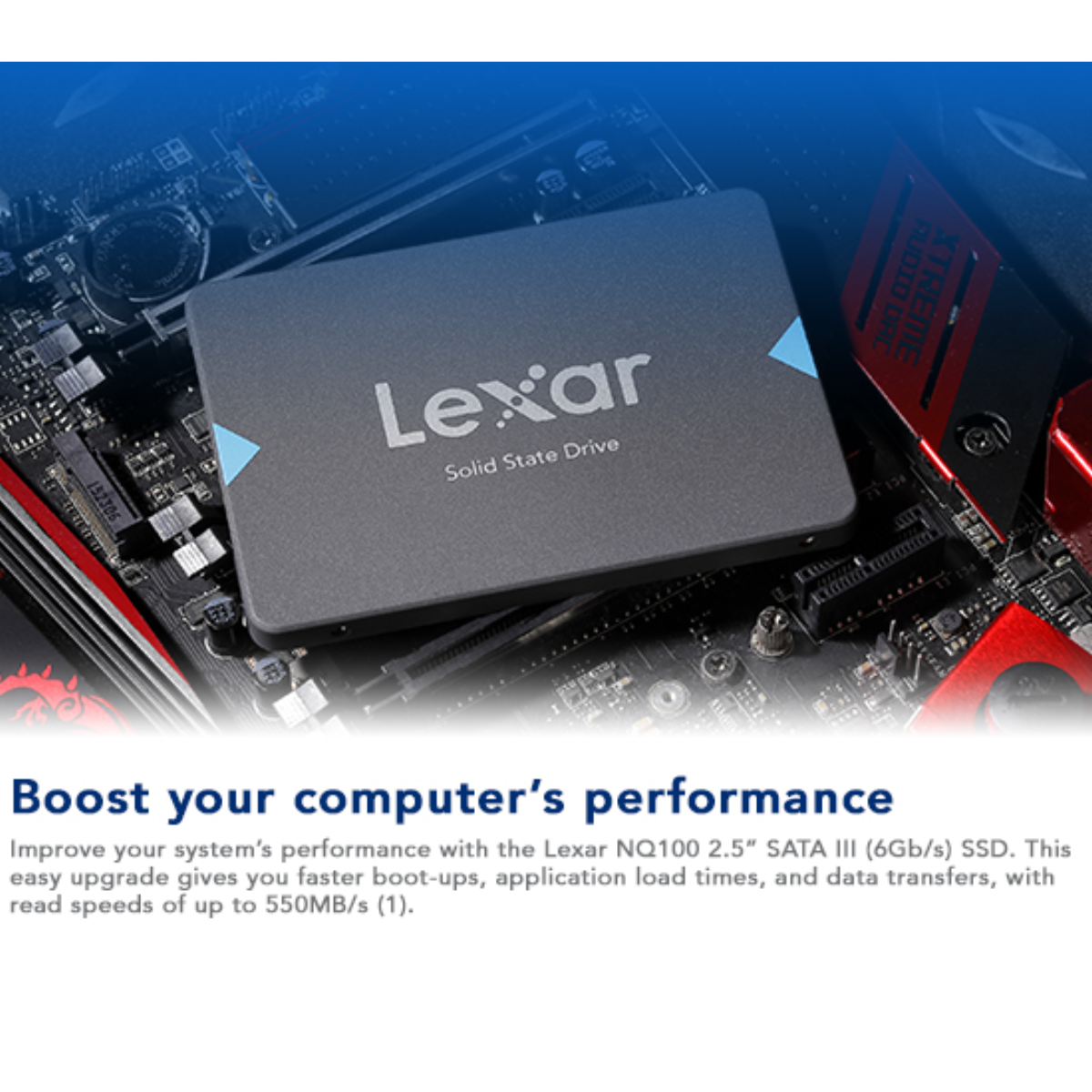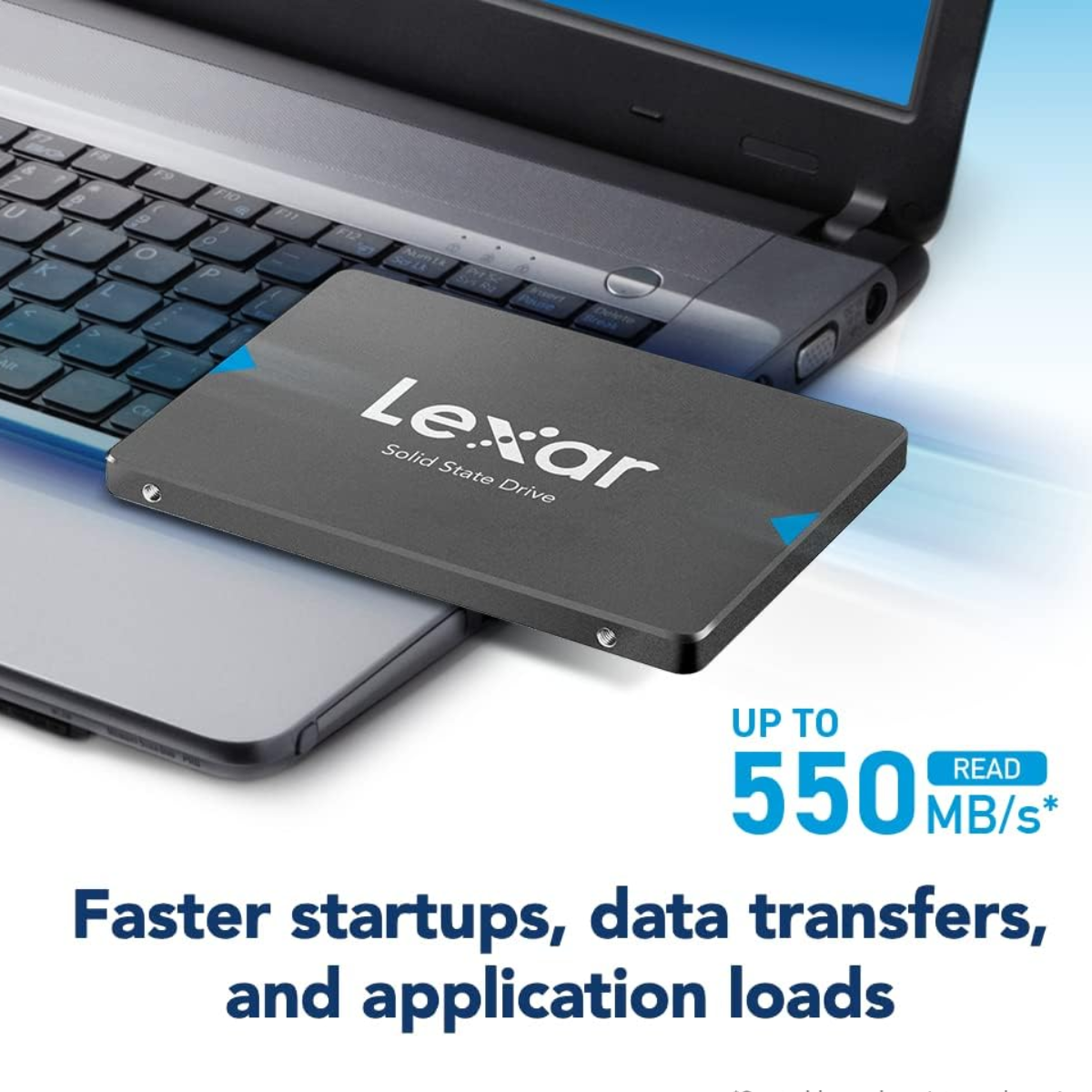 O Lexar NQ100 é um SSD interno de 2.5 polegadas com interface SATA III (6Gb/s), ideal para atualizar sistemas que ainda utilizam HDs mecânicos. Com velocidade de leitura de até 550MB/s, ele oferece inicialização rápida, carregamento ágil de aplicativos e maior eficiência energética.