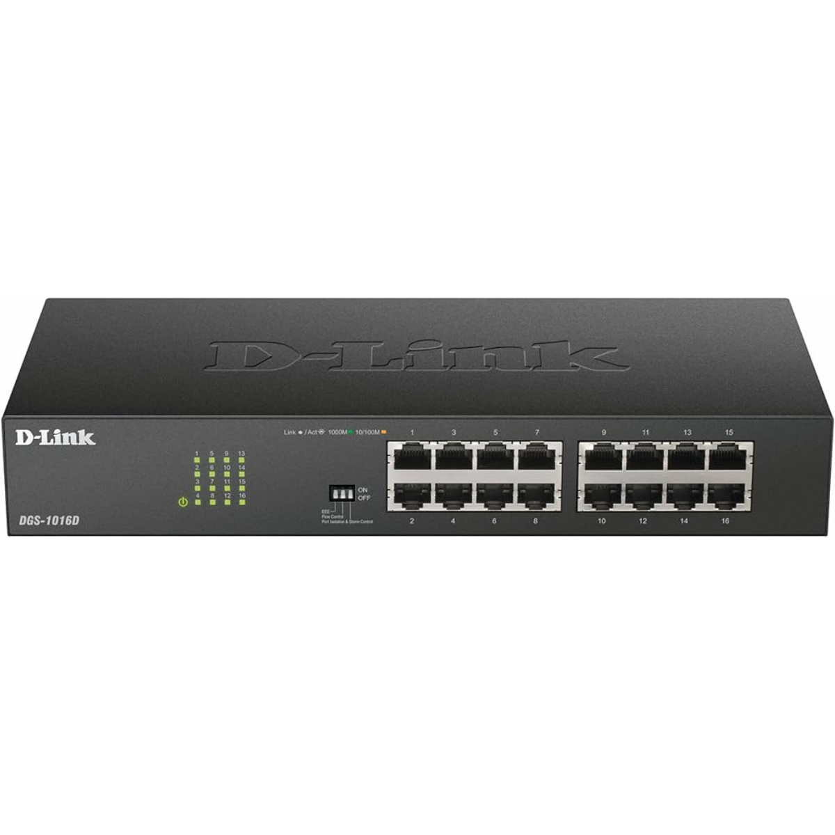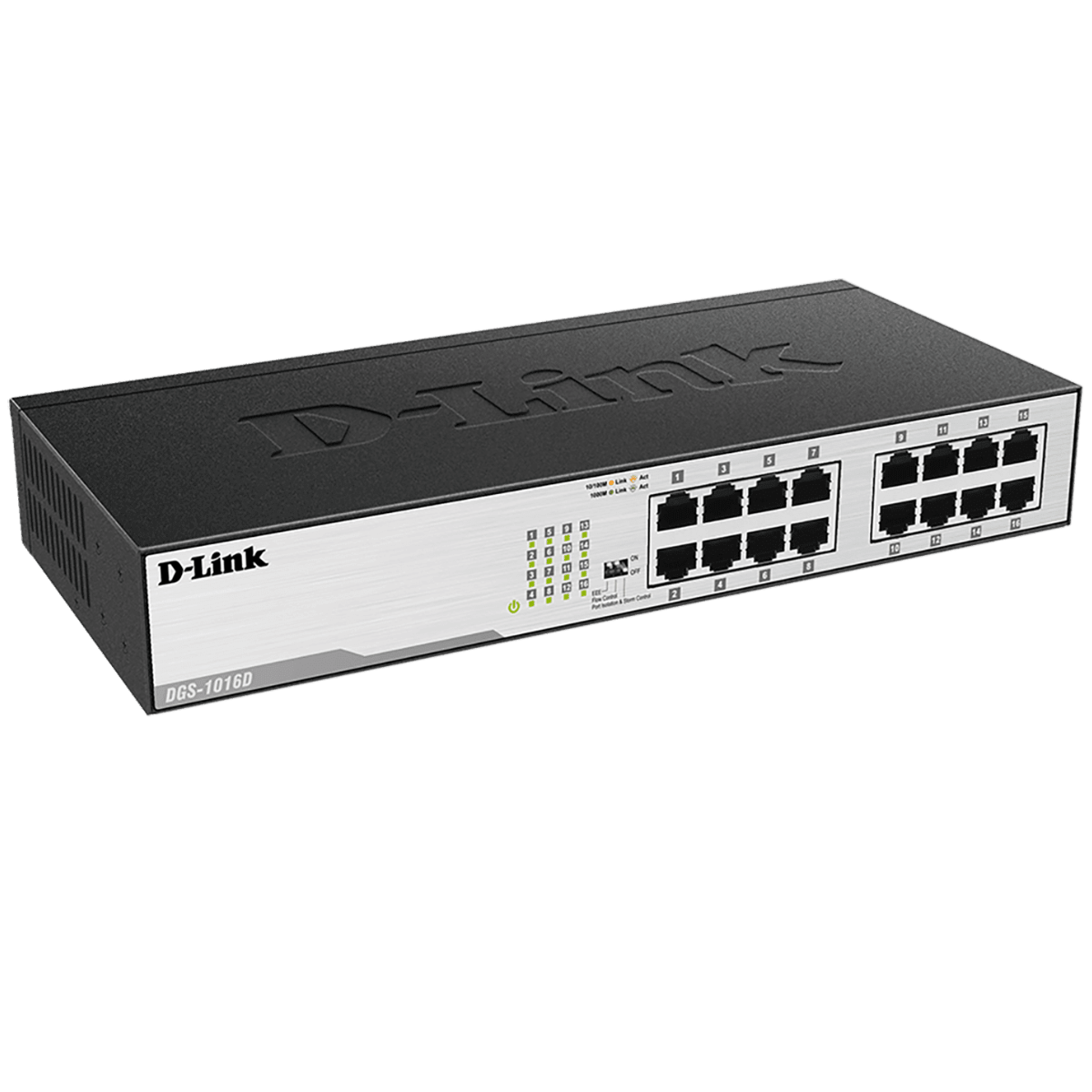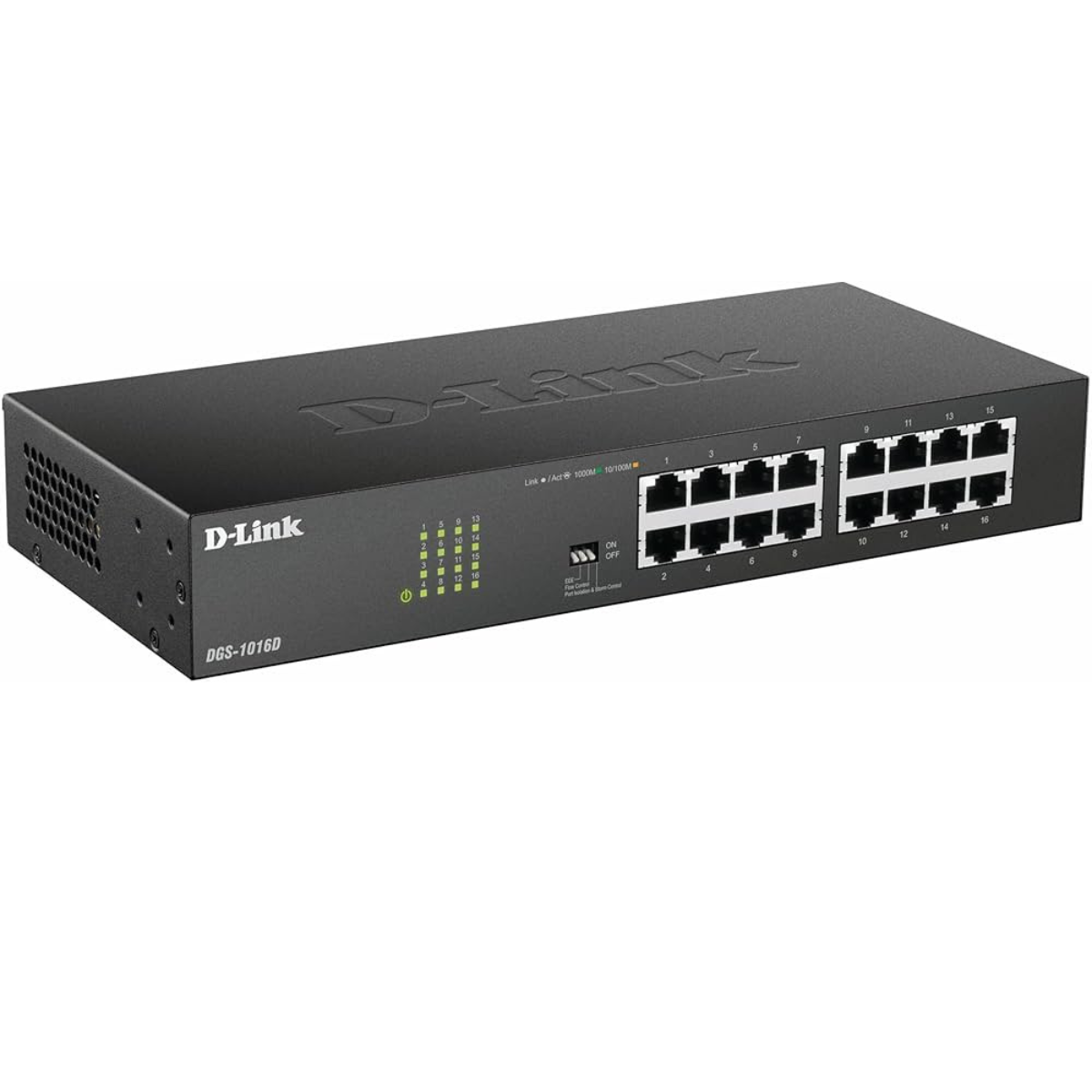 O modelo DGS-1016D é um switch não gerenciável com 16 portas Gigabit, ideal para quem busca desempenho confiável sem a complexidade de configuração. Ele também faz parte da série com tecnologia Green Ethernet, que ajusta o consumo de energia conforme o status da conexão.