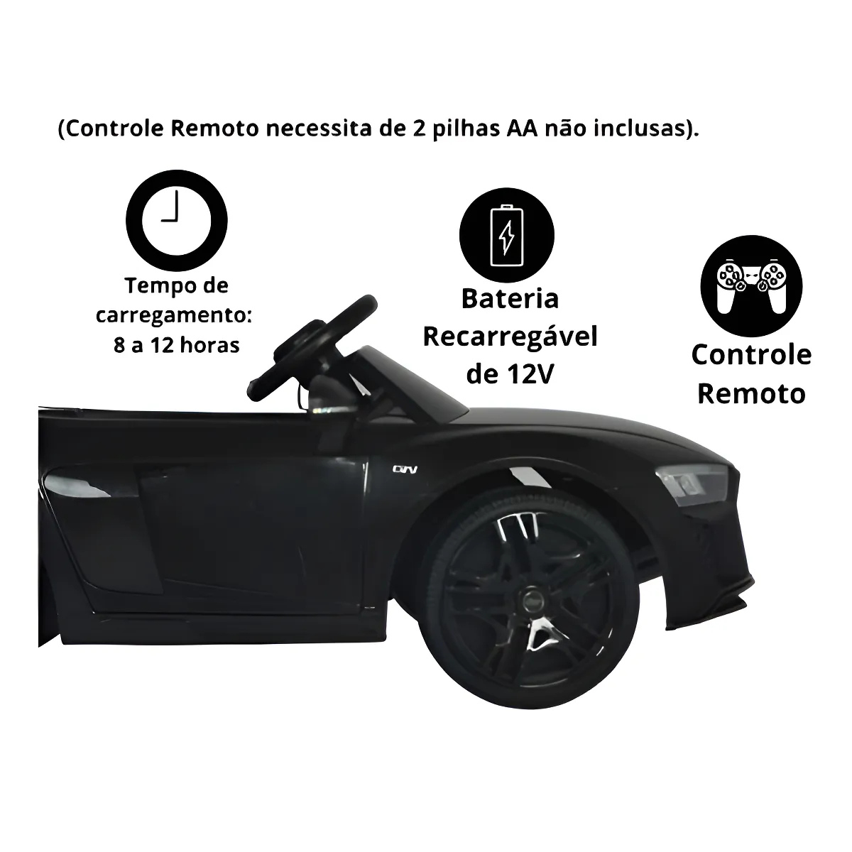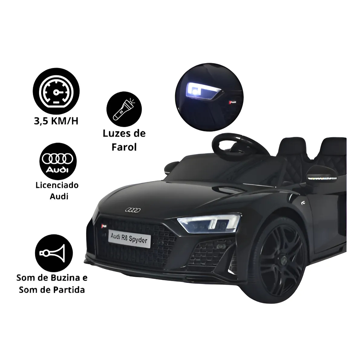 Mini carro elétrico 12V audi R8 Spyder Licenciado Preto BW123PT