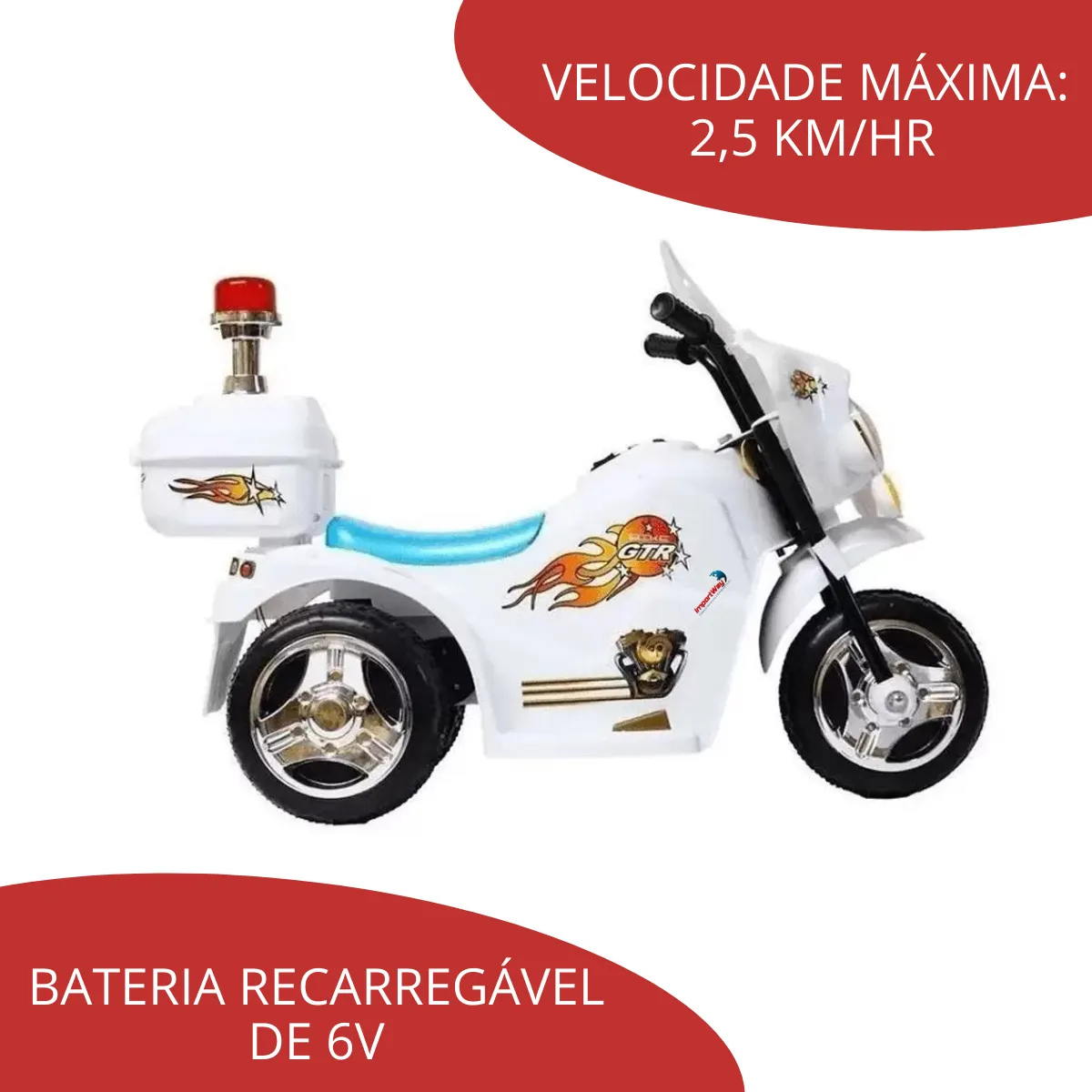 – 01 Mini Moto Elétrica Infantil Triciclo Importway Branco