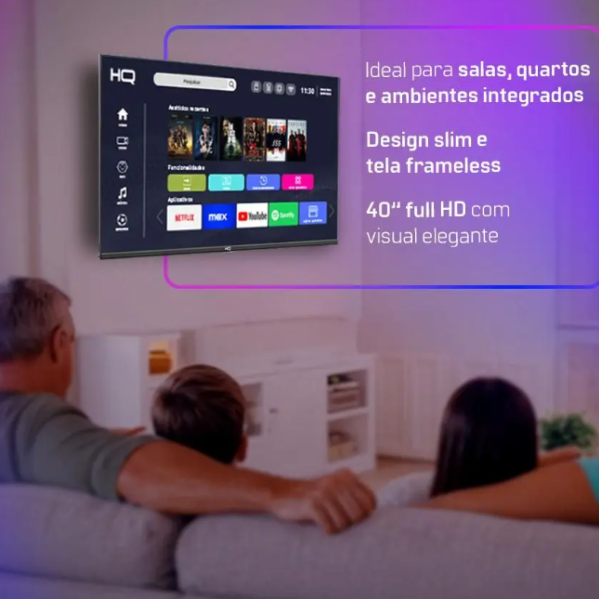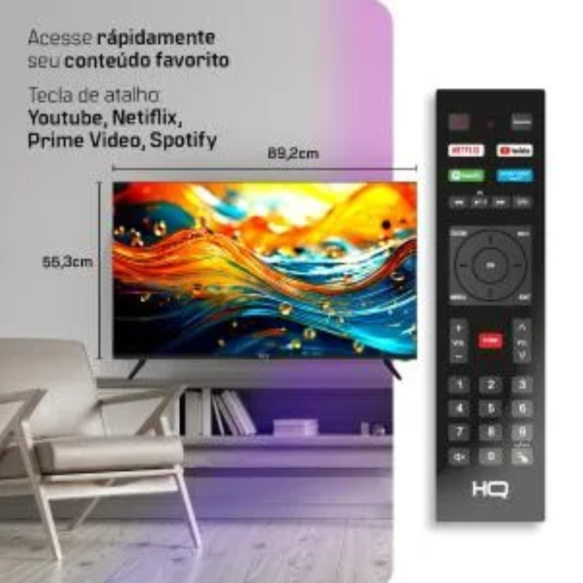 Transforme sua experiência de entretenimento com uma Smart TV HQ 40 Full HD. Com resolução 1920×1080, ela entrega imagens nítidas, cores vivas e excelente contraste, garantindo mais qualidade para assistir filmes, séries e jogos no dia a dia.