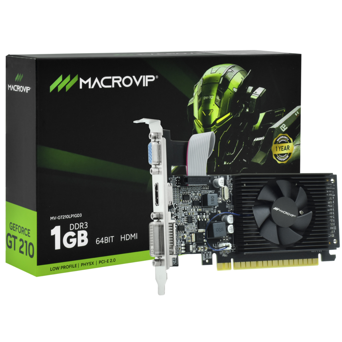 VGA 1GB MACROVIP GT210 589MHZ 64BIT DDR3/DVI/HDMI/VGA LOW PROFILE